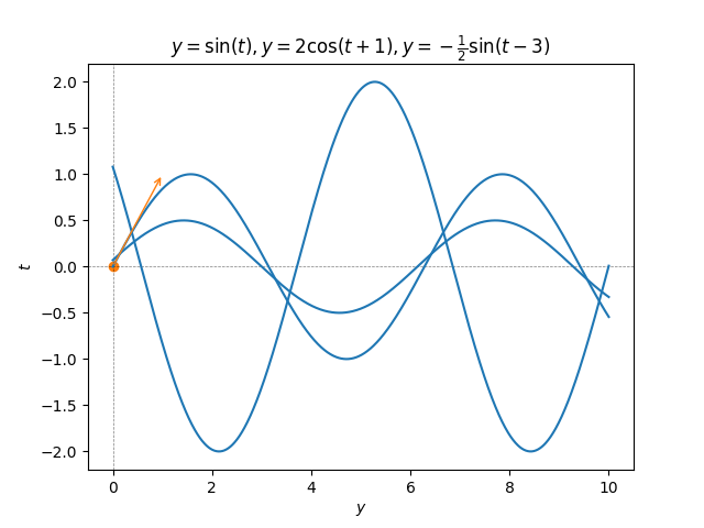 In conclusion, any sinusoid with frequency \(\omega=1\) is a solution to ([eq:ch5_so_lin_aut_imag_roots_first_example]), regardless of the amplitude or phase shift.