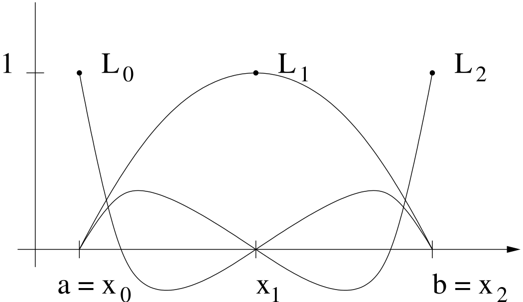 In Figure 6.2Figure 6.4, the Lagrangian polynomials are plotted for \(n=0,1,2.\)