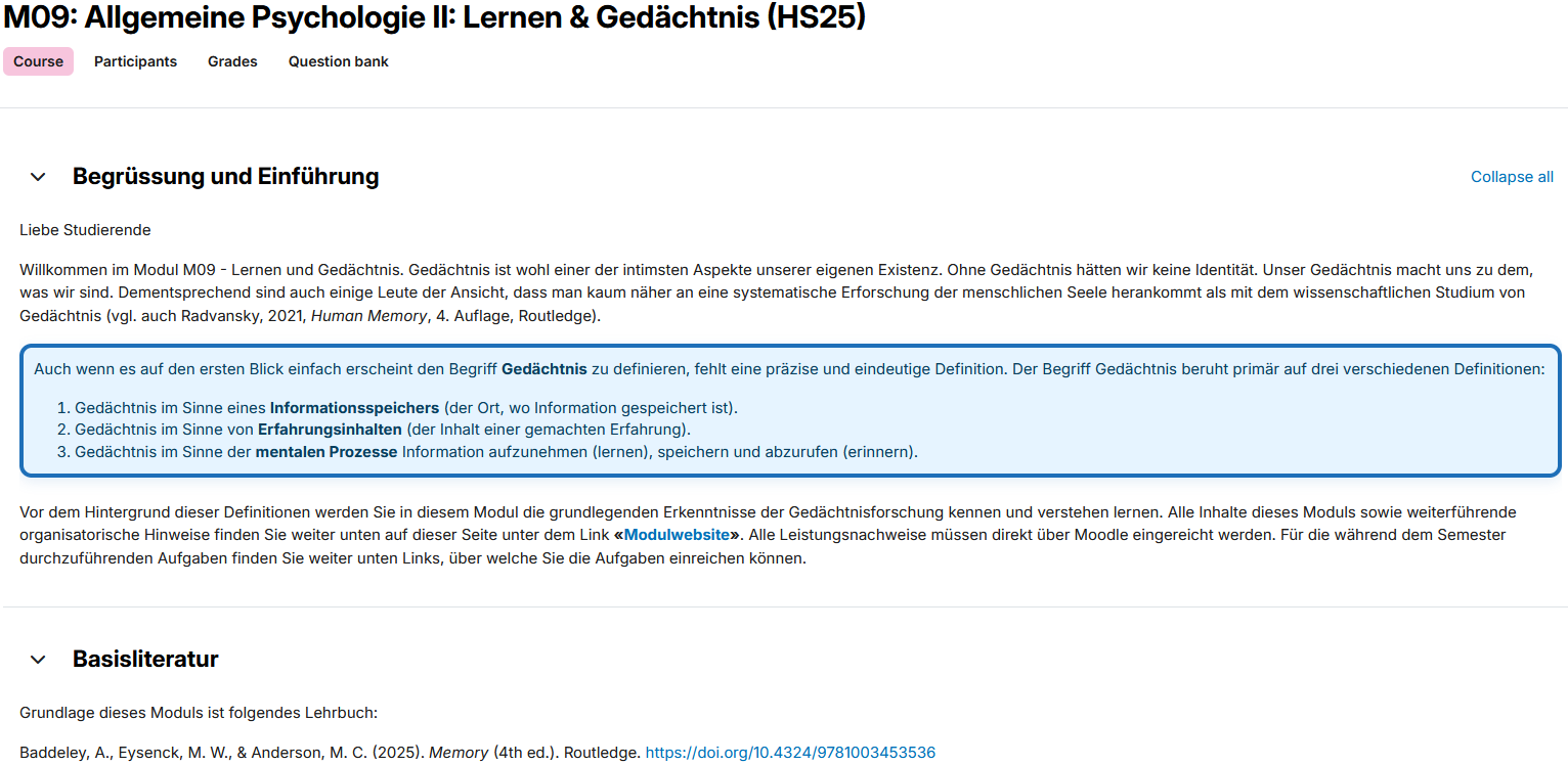 | 01 | 18.09. | Gedächtnis und Gehirn | 1 & 2 |